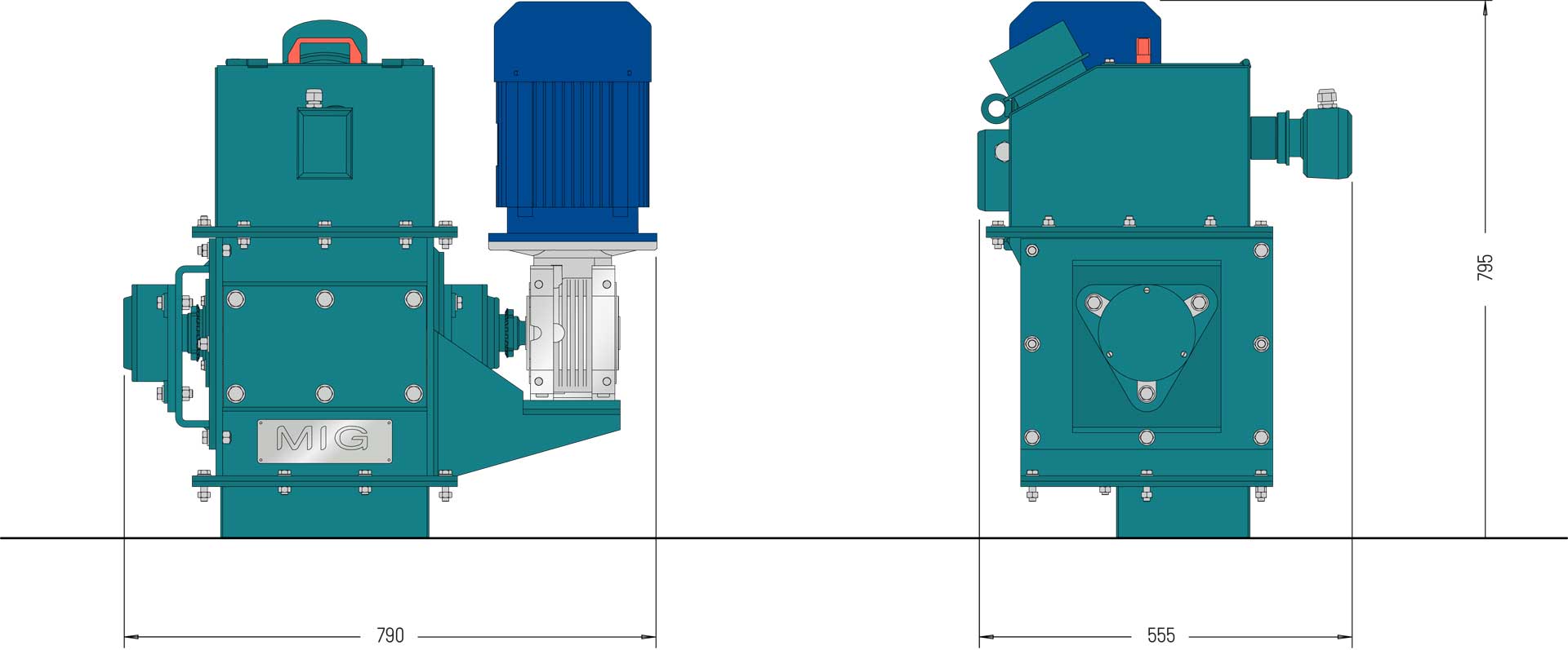 Máquina adecuada para triturar la torta que sale de la prensa. Está constituida por un cuerpo de chapa rectangular resistente que se inserta después de la descarga de la prensa. En su interior hay un eje giratorio soportado por dos rodamientos radiales de rodillos dobles y accionado por un motorreductor directamente acoplado al buje de transmisión.