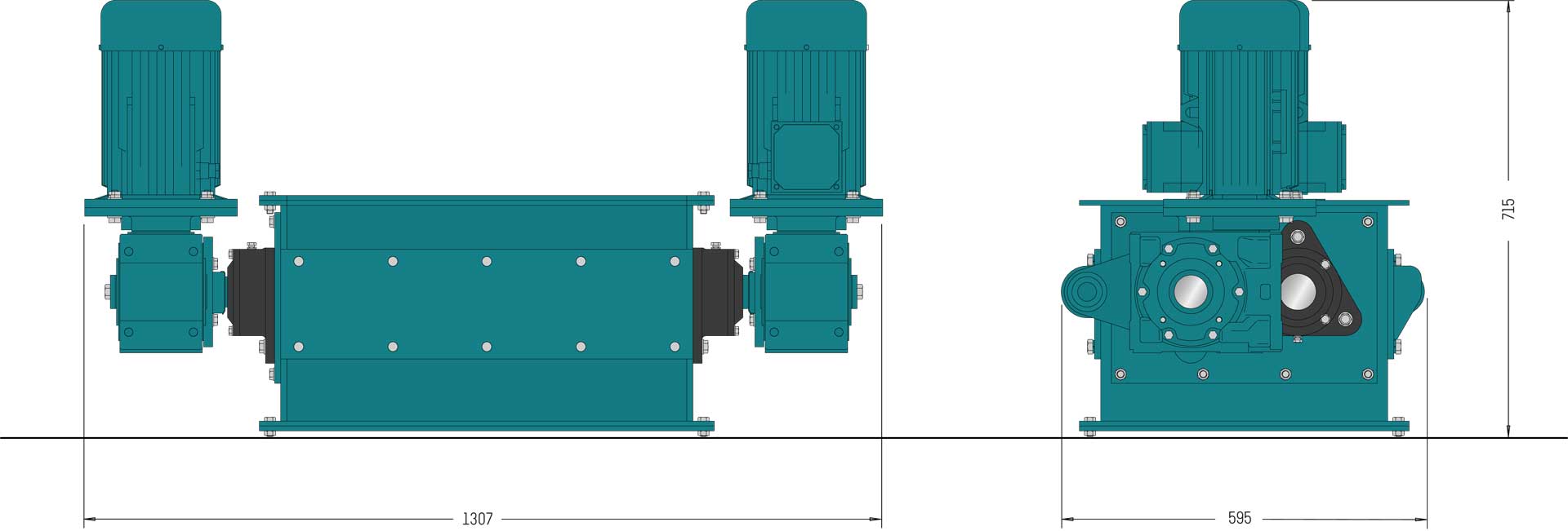 Máquina para trituración gruesa de la torta que sale del prensado. En el interior hay un doble eje giratorio soportado por rodimientos de rodillos radiales dobles y accionado por un motorreductor directamente acoplado al cubo de transmisión. En el eje giratorio se colocan dientes de forma especial con tratamiento superficial, que están divididos axialmente en forma de espiral bidireccional para garantizar una buena distribución del material a triturar a lo largo de todo el eje.