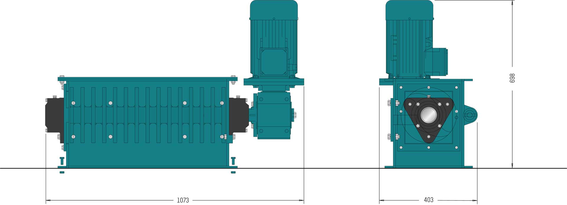 Máquina adecuada para triturar la torta que sale del prensado. Consta de un robusto cuerpo de chapa rectangular que se introduce tras la descarga de la prensa. Al interior hay un eje giratorio sostenido por dos rodamientos radiales de doble rodillo y accionado por un motorreductor directamente acoplado al cubo de transmisión.En el eje giratorio se colocan dientes de forma especial con revestimiento antidesgaste y se dividen axialmente en forma de espiral bidireccional para garantizar una buena distribución del material a triturar a lo largo de todo el eje. En el interior del cuerpo se encuentran instalados dientes fijos de contraposición, también con revestimiento antidesgaste, que interponiéndose con los giratorios provocan el aplastamiento del material entrante.