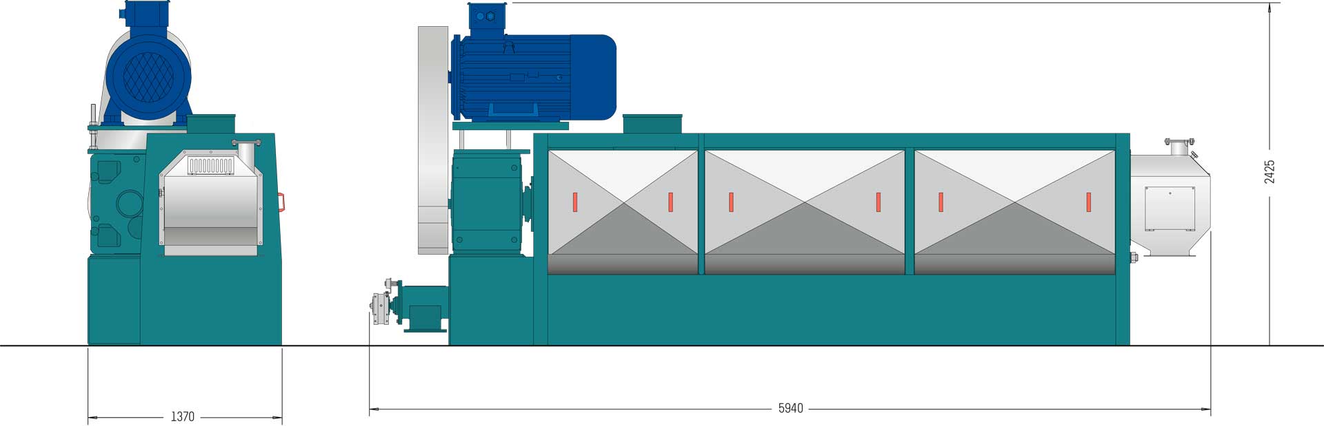 Prensa diseñada para realizar un proceso de pre-prensado de semillas oleaginosas con un factor de servicio continuo de 24 horas, prensado con residuo de aceite en el producto de salida apto para ser exprimido en un segundo prensado. Esta máquina, construida integramente en acero al carbono y equipos fabricados con materiales especiales, se suminstra completa con todos sus accesorios como: centralita óleo-dinámica y llaves especiales para apertura rápida de la máquina para el  mentenimiento periódico. Esta máquina es accionada por un motor eléctrico cuya potencia se transmite, a través de correas-poleas, directamente a un reductor y luego el movimiento se transmite directamente al eje de presión que, junto con la jaula, constituyen los elementos fundamentales para la transformación del producto. El eje de presión consta de varias con la función de transportar el material dentro de la jaula y comprimirlo para obtener la salida del aceite.