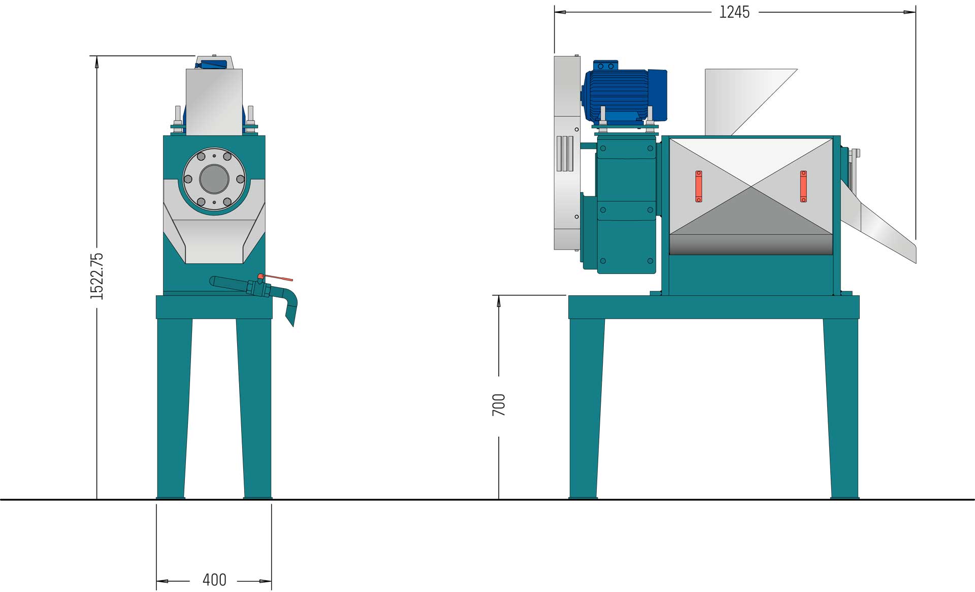 Máquina diseñada para prensar semillas con humedad adecuada, prensado de alto rendimiento para un mínimo residuo de aceite en le producto sólido de salida. Esta máquina, construida íntegramente en acero al carbono y tratada térmicamente en las piezas de desgaste, es accionada por un motor eléctrico. Esta potencia se transmite, a través de correas-poleas, directamente a un reductor de marca nacional, que, para garantizar una larga vida útil y un alto silencio durante el movimiento, está construido con materiales de primera calidad utilizando engranajes dentados helicoidales rectificados y tratados térmicamente. El movimiento se transmite directamente al eje de presión que, junto con la jaula y el cono, constituyen los elementos fundamentales del campo de transformación del producto. El eje de presión tiene la función de transportar el material al interior de la jaula, comprimiéndolo hacia las regletas, por donde sale el aceite. La regulación del prensado se realiza mediante el cono de presión desde donde se descarga el residuo sólido del producto transformado.