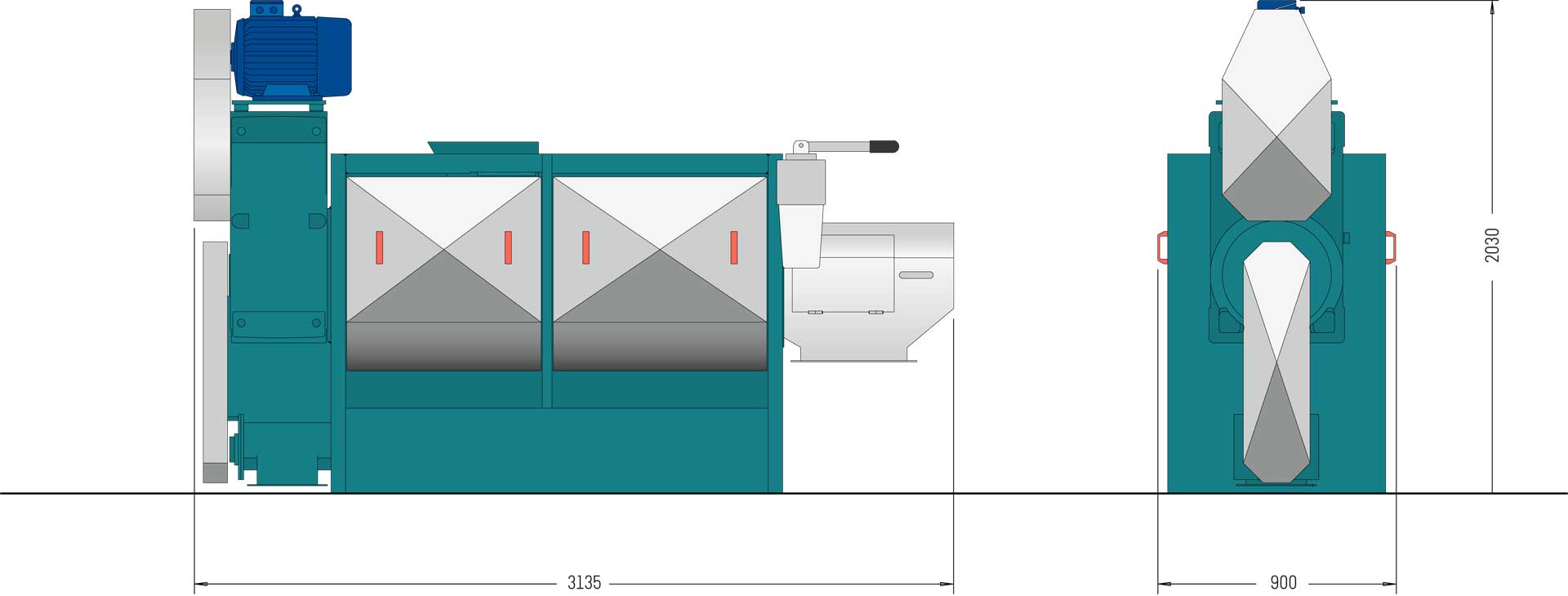 Máquina diseñada para prensar semillas con humedad adecuada, prensado de alto rendimiento para un mínimo residuo de aceite en le producto sólido de salida. Esta máquina, construida íntegramente en acero al carbono y tratada térmicamente en las piezas de desgaste, es accionada por un motor eléctrico. Esta potencia se transmite, a través de correas-poleas, directamente a un reductor de marca nacional, que, para garantizar una larga vida útil y un alto silencio durante el movimiento, está construido con materiales de primera calidad utilizando engranajes dentados helicoidales rectificados y tratados térmicamente. El movimiento se transmite directamente al eje de presión que, junto con la jaula y el cono, constituyen los elementos fundamentales del campo de transformación del producto. El eje de presión tiene la función de transportar el material al interior de la jaula, comprimiéndolo hacia las regletas, por donde sale el aceite. La regulación del prensado se realiza mediante el cono de presión desde donde se descarga el residuo sólido del producto transformado.