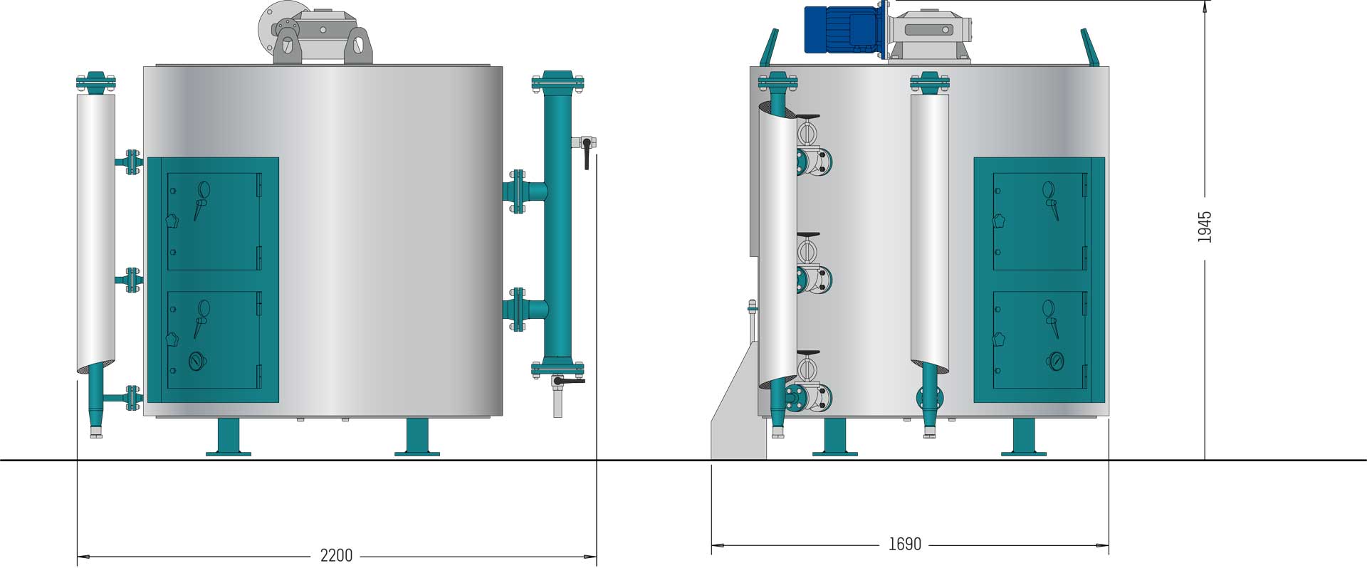 El calentador está ralizado con planos horizontales independientes entre sí con circulación de aceite diatérmico con entradas y salidas agrupadas. En el interior, un eje giratorio de palas diferenciadas controlado por un motorreductor mantiene el material en constante agitación, favoreciendo la evaporación de la humedad contenida en él y un dispositivo especial que envía automáticamente el material desde el plan superior al inferior.
