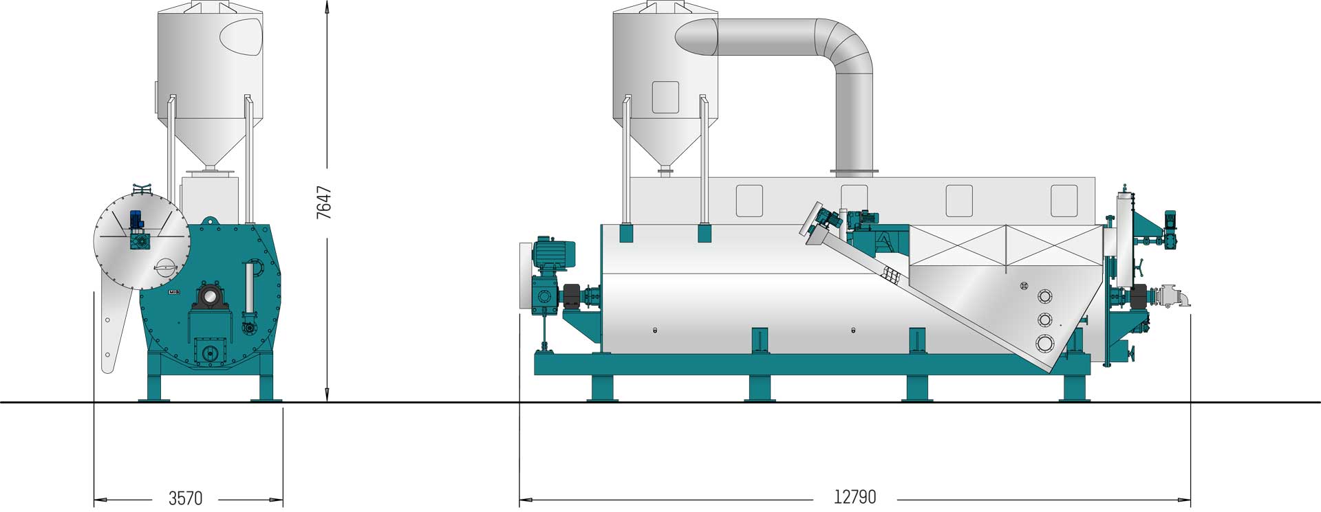 Cuocitore continuo EC 200 per la cottura degli scarti della macellazione. Corpo esterno realizzato con sagoma aperta sulla quale vi è collocata la cappa di raccolta fumi col relativo ciclone AISI 304. All’interno è collocato un super albero agitatore a doppia corona di fascio tubiero con tubi di grosso spessore a garanzia di una buona durata. Esso viene fornito completo di apparecchiatura di drenaggio ed estrattore circolare. la trasmissione è garantita da un riduttore ad assi paralleli direttamente sul mozzo di trasmissione.